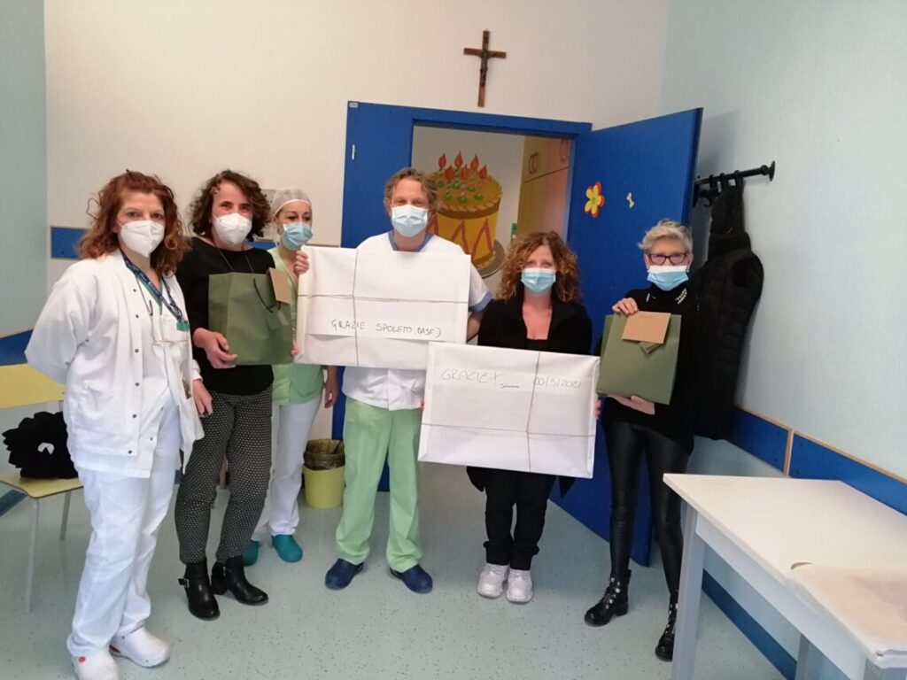 La direttrice del presidio ospedaliero Orietta Rossi e le coordinatrici infermieristiche spoletine hanno voluto omaggiare con un presente i due colleghi lombardi Davide Giustivi, infermiere al Pronto Soccorso dell’ospedale di Lodi e Simona Ravera infermiera di Terapia intensiva al nosocomio di Codogno rivolgendo loro il più sentito ringraziamento per il prezioso contributo offerto con grande dedizione, professionalità e disponibilità alla collettività e ai sanitari del “San Matteo degli Infermi” in una fase particolarmente critica dell’emergenza Covid.