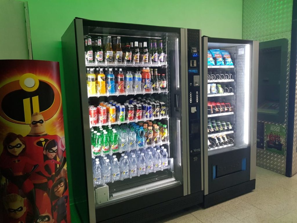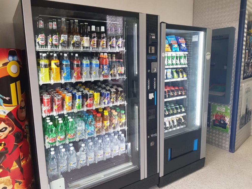 I distributori automatici sono forniti di snack, barrette energetiche, patatine, pop corn, bibite gasate, acqua minerale, thé caldo e freddo, orzo, caffè, ginseng, cioccolata calda e cappuccino. È possibile acquistare anche bevande energetiche e prodotti a base di canapa. Non resta che inserire una monetina…