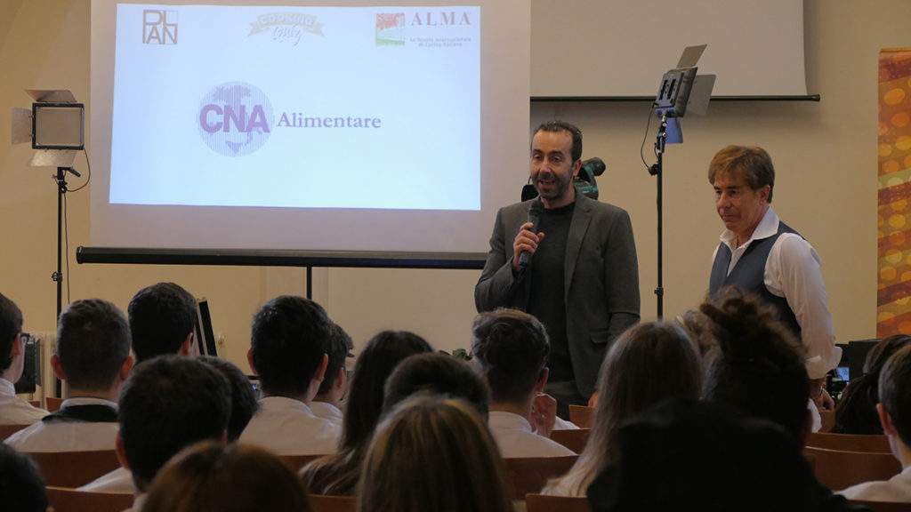 Grandissimo successo e ottimi i risultati raggiunti dagli studenti dell’IPSSART G. De Carolis di Spoleto. Marta Confente, Diplomata ALMA del Corso Superiore di Cucina Italiana e Ciro Fontanesi Coordinatore di ALMA WINE ACADEMY hanno tenuto le lezioni agli studenti spoletini. Due ore per ogni indirizzo all’insegna della cultura e della formazione. Presente alla tappa di Spoleto Leonardo Santarelli del Pastificio La Romagna in rappresentanza di CNA Agroalimentare. “Sono molto contento di essere a Spoleto – ha dichiarato Leonardo Santarelli – Consiglio ai ragazzi di impegnarsi in questa bellissima attività formativa e di pensare per il futuro anche al settore della trasformazione dei beni alimentari i. quanto esistono molto aziende artigianali e non che cercano questo tipo di figura. La CNA aiuta le aziende nella formazione dei ragazzi e nell’internazionalizzazione delle imprese oltre a tutelarci nella difesa dei prodotti nel mercato internazionale che dalle mille normative”.