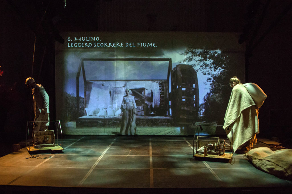 In questo scenario rurale, ben rappresentato dalle proiezioni scenografiche ed in particolare dai modellini dei luoghi, spostati e alternati sul palco dagli stessi attori, con movimenti funzionali, ma anche profondamente espressivi, si svolgono le vicende di evoluzione personale e di ricerca interiore dei tre protagonisti.