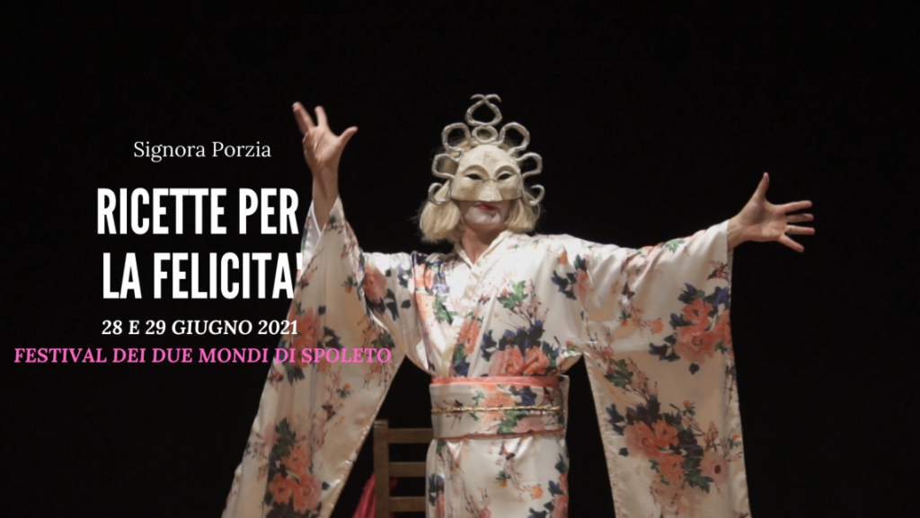 Lo spettacolo-show di Signora Porzia “Ricette per la felicità”, già stato a Berlino, Roma e in festival nazionali, approda al 64° Festival Dei Due Mondi di Spoleto 2021, in doppia replica 28 e 29 giugno prossimi. L’attore e performer toscano Federico Barsanti, ideatore del personaggio insieme all’attrice Valentina Gianni, è l’interprete e autore di questo incredibile personaggio che sfugge ad ogni classificazione. Performance d’attore, monologo che coinvolge il pubblico a volte interrogandolo e costruendo lo spettacolo di volta in volta con esso, “jazz teatrale” come qualcuno lo ha definito, gli show di Signora Porzia sono autentici eventi; a seconda del pubblico lo show si muove in una direzione piuttosto che un’altra facendo di ogni serata qualcosa di unico, irripetibile, come un concerto rock; molti gli ingredienti dello show tra cui graffiante ironia, irriverenza, ma anche spiritualità che convogliano in momenti di straordinaria poeticità esaltati da mimica e fisicità esplosive, che fanno di ogni spettacolo una vera e propria esperienza, “una liberatoria ed esilarante psicoanalisi collettiva”. In tutto questo Signora Porzia ci fornisce gli ingredienti e le ricette segrete per la felicità che l’essere umano va cercando da millenni. Come una sciamana, Porzia ci guida in un rituale fatto di musica, storie, momenti catartici, meditazione, risate. Lo spettacolo nasce dal bisogno di cambiamento/trasformazione intrinseco in ognuno di noi. Una performance in cui Federico Barsanti trasforma il teatro vuoto da cornice silenziosa a tempio sensoriale, grande cucina, laboratorio onirico, attraverso il quale comprendere il nostro mondo interiore, imperfetto, meraviglioso e pieno di contraddizioni. I suoi show sono stati definiti “terapeutici”, “illuminanti”, “spassosi”, “liberatori”, “sciamanici”, “mai visto prima”, “al di là”… Molti spettatori, al termine degli spettacoli, hanno manifestato la netta sensazione che qualcosa dentro di loro ha imboccato una strada nuova. Tutti gli spettacoli di Signora Porzia sono “autentici” “unici”, “irripetibili”, “non replicabili”. Federico Barsanti, con il personaggio Signora Porzia, collabora con psicologi in gruppi di lavoro esperienziale-terapeutico. Lo spettacolo, al 64° Festival dei Due mondi di Spoleto è inserito nella sezione Progetti Speciali de LaMaMa Umbria International – La MamaOpen che raccoglie le migliori esperienze di talentuosi attori, registi e compagnie emergenti del panorama italiano ed internazionale.