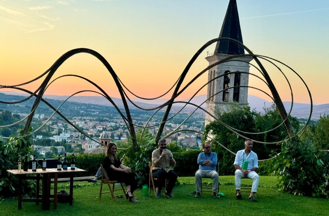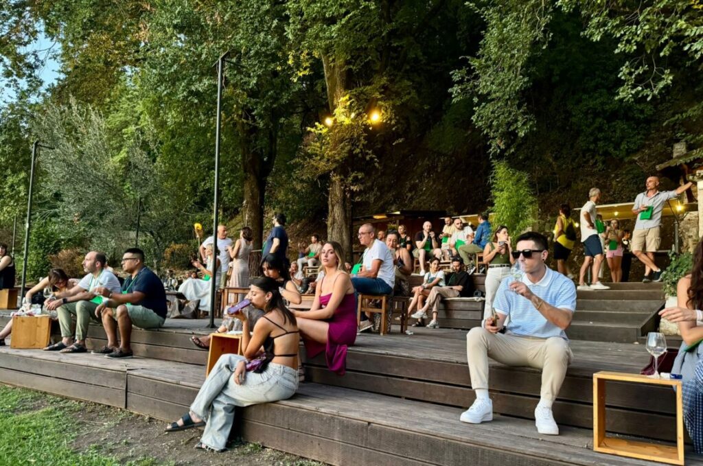 La formula dell’evento, organizzato per il Comune di Spoleto dall’APS Fuori Festival, ha attirato sotto la Rocca Albornoz giovani e meno giovani, spoletini e molti turisti italiani e stranieri. Al talk “Terroir e stili produttivi del Trebbiano Spoletino”, condotto dall’enologa e sommelier Francesca Granelli, a cui hanno partecipato i produttori Paolo Bartoloni (cantine Le Cimate) e Filippo Antonelli (cantina Antonelli San Marco), è seguito il programma di performance musicali con il live dei Ventotto e i dj set di Blackmerendass, Cap e Clapgen, con un gioco di luci molto suggestivo, creato ad hoc per valorizzare l’installazione artistica di Arundo.
