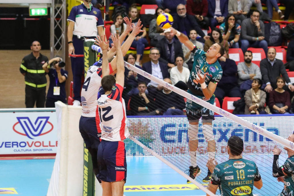 Partita sulle montagne russe per i Block Devils che alternano momenti di ottimo gioco ad altri con delle pause che, unite ad un avversario trascinato da un grande Kurek (33 palloni vincenti per l’imprendibile opposto polacco), per poco non costano il match.