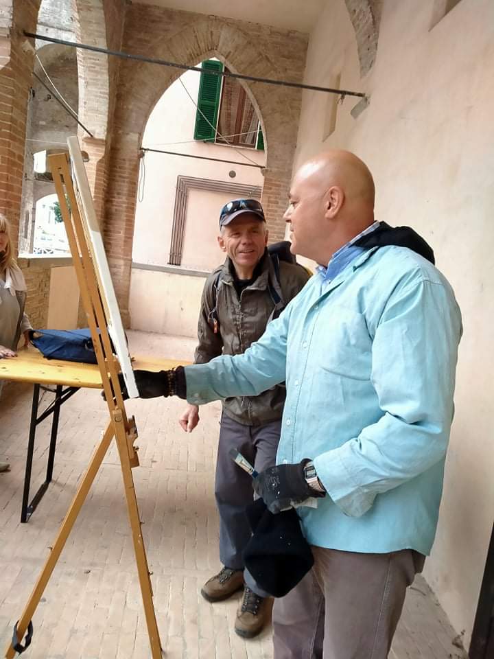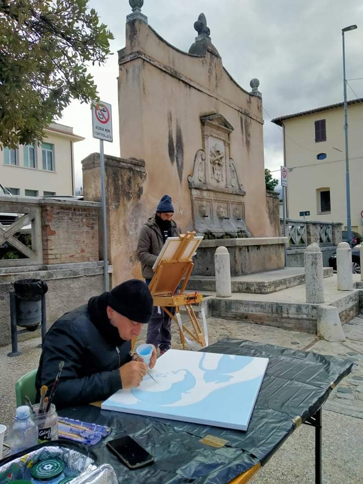 Oggi primo giorno di tramontana vera che ha scompigliato tele e capelli nel “Primo Trofeo Antico Mulino San Toracchio al Castello”, una estemporanea fortemente voluta dal Presidente della Comunanza Agraria di Sant’Eraclio Mauro Marchionni e organizzata dal Direttore Artistico di Carapace Mac Art, Mariolina Savino, che ha visto in singolar tenzone artisti provenienti da varie regioni italiane. Il vincitore è il MAESTRO Marco Giacchetti , incoronato Primo assoluto dalla giuria di ben 5 giurati e sono nell’ordine: