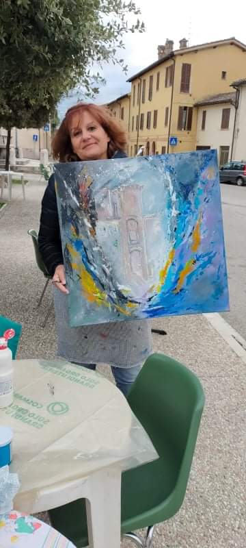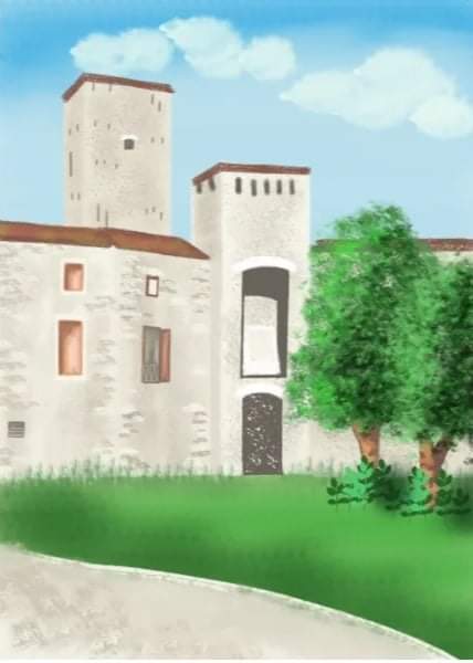 Maria Assunta Toniacci, affetta di SLA dipinge grazie ad un puntatore oculare e crea immagini di estrema delicata bellezza, come l’opera odierna realizzata in estemporanea anche se virtuale, che rappresenta il castello di Sant’Eraclio.