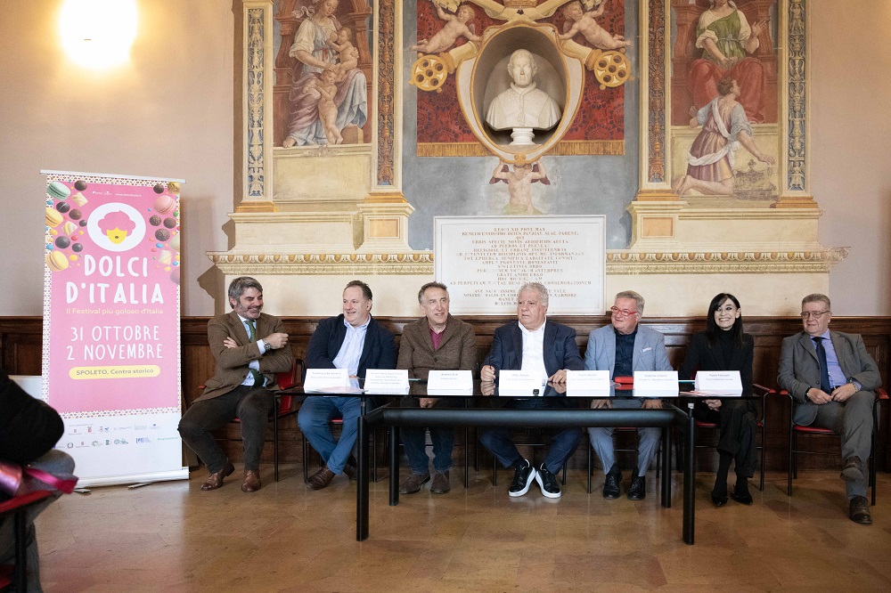 Si è tenuta questa mattina presso il Palazzo Comunale di Spoleto la conferenza stampa di presentazione della nuova edizione di Dolci d’Italia, il Festival Nazionale dei Dolci organizzato da Epta Confcommercio Umbria con il contributo e il patrocinio del Comune di Spoleto in programma dal 31 ottobre al 2 novembre 2025 nel centro storico della città. All’incontro sono intervenuti il Presidente di Epta Confcommercio Umbria Aldo Amoni, il Sindaco di Spoleto Andrea Sisti, l’Assessore con deleghe al turismo, sviluppo economico, commercio e marketing del Comune di Spoleto Giovanni Maria Angelini Paroli, il Presidente della Confcommercio – Mandamento di Spoleto Tommaso Barbanera, il Presidente del GAL Valle Umbra e Sibillini Pietro Bellini, la Dirigente dell’Istituto Alberghiero di Spoleto “Giancarlo De Carolis” Roberta Galassi e Luciano Belli per la Fondazione Cassa di Risparmio di Spoleto.