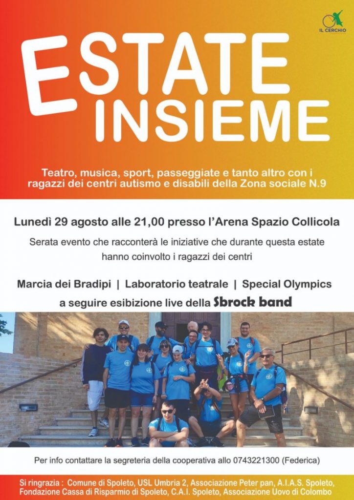 Con ESTATE INSIEME ripercorreremo insieme le esperienze vissute dai nostri ragazzi: lunedì 29 agosto presso l’Arena Spazio Collicola, a partire dalle 21,00 si svolgerà una serata evento di restituzione delle iniziative svolte durante l’estate.