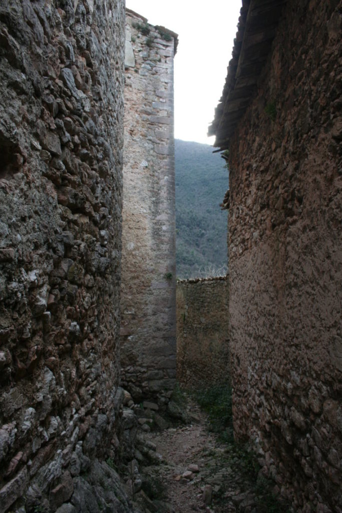 L’intero paese è poi dominato dai resti, ancora ben conservati, della torre di guardia della fortezza, dalla cui finestrella, arrampicandosi, è visibile l’intera vallata ed in particolare l’abbazia di San Pietro in Valle che da qui poteva essere controllata e difesa.