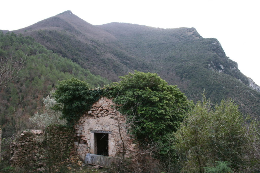 Per iniziare la nostra esplorazione del paese siamo giunti in auto a Colleponte e abbiamo preso il sentiero sterrato che si immerge nei boschi, ben indicato dalla segnaletica locale. Percorsi i circa due chilometri di cammino in salita, necessari per giungere ad Umbriano,ci siamo trovati di fronte le prime case diroccate, completamente avvolte dall’edera e da altri rampicanti. Nelle immediate vicinanze di questi ruderi, quel che resta di una parte delle antiche mura.