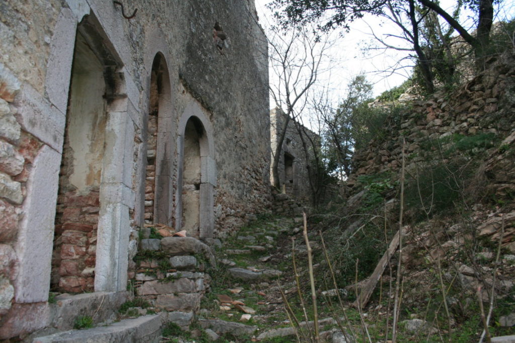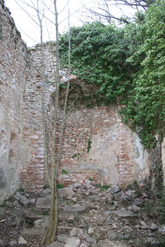 Immediatamente ci siamo resi conto che l’esperienza vivibile qui è unica nel suo genere, proprio perché da’ la possibilità di immergersi nella storia, di respirarla ad ogni passo. Procedendo lungo i camminamenti si incontrano numerose case in rovina, la maggior parte delle quali prive di tetti, ma in cui si possono ancora ammirare i camini, gli abbeveratoi e le vecchie stalle. Al centro del paese, con un fantastico belvedere, troviamo la chiesa nella quale sono tuttora visibili frammenti di affreschi dell’epoca, opera dello Spagna, tra cui due ancora identificabili, San Sebastiano e Crocifissione con l’Eterno.