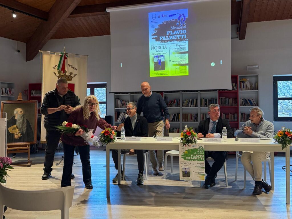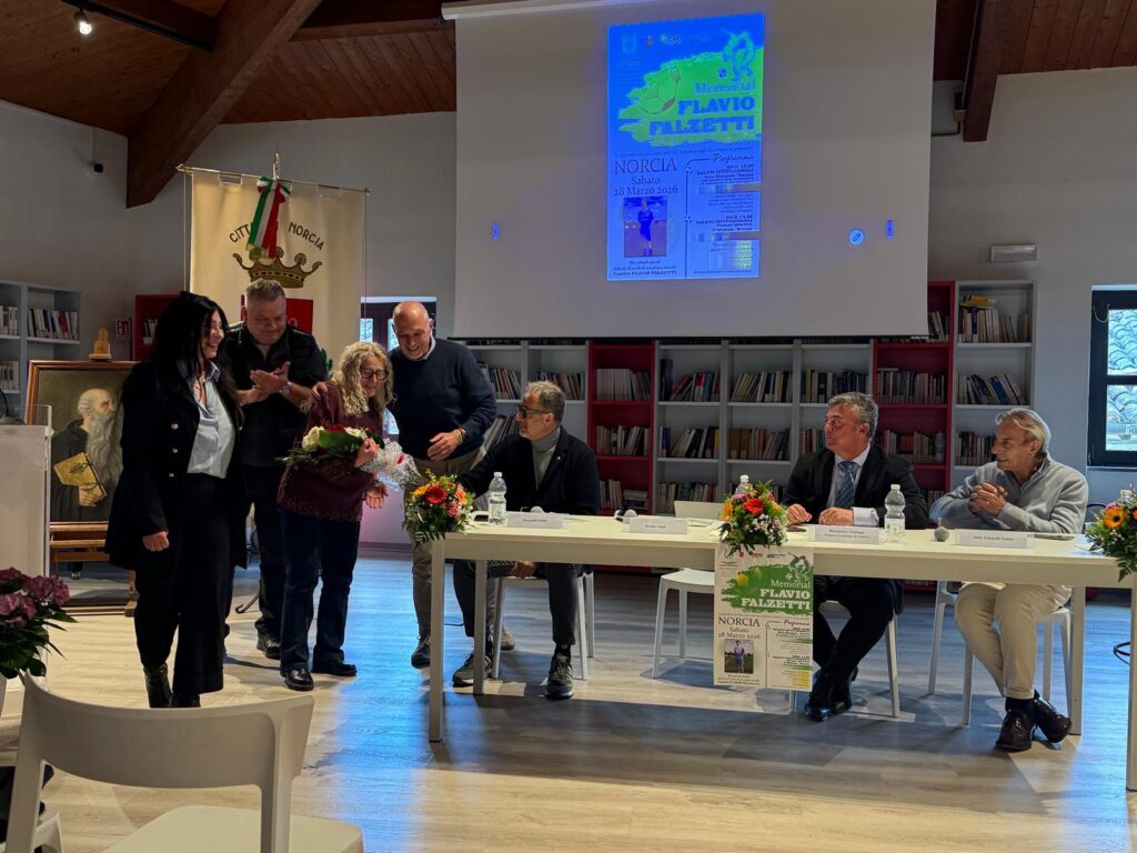 In mattinata, alla sala Digipass, una platea numerosa ed attenta, composta in maggior parte dai ragazzi dell’Istituto “De Gasperi-Battaglia”, accompagnati dalla onnipresente dirigente Rosella Tonti e dalla docente, Beatrice Partenzi, ha ascoltato le testimonianze di chi ha conosciuto da vicino questo ragazzo che trasmetteva energia positiva a chiunque lo avvicinasse. Il quale, come ha ricordato Nando Scarpelli, il medico onco ematologo dell’ospedale di Spoleto, che gli è stato accanto sino alla fine diventando uno dei suoi amici più cari: “Era un paziente al quale si faceva fatica a star dietro per il suo temperamento ed il carattere travolgente con cui affrontava la malattia –, ha ricordato Scarpelli -, mettendosi, però, al servizio del prossimo”. Flavio Falzetti, grazie anche all’amicizia con l’ex consigliere regionale delle Marche, Francesco Gentiloni, che lo conobbe durante la malattia del figlio Stefano, all’epoca giocatore del Corridonia ed oggi della “Life ritorno alla vita”, è stato l’artefice di una legge regionale, promulgata nel 2012, e che porta il suo nome. “Quella legge -, ha ricordato Gentiloni-, che ci ha consentito, attraverso uno screening di 270 ragazzi dai 14 ai 18 anni, di scoprire 11 casi di linfonodi e curarli, rilasciando agli sportivi il passaporto emato chimico, che per Flavio era diventato una sorta di mantra. Peccato,però, che la Regione Marche non ha investito più risorse per farla funzionare”. Tra le testimonianze più significative di chi è stato in prima linea con lo sfortunato calciatore e diesse nursino, per combattere la battaglia della prevenzione contro linfomi e leucemie, quelle di Emilio Pierpaoli, responsabile della Life e Danilo Vitali, che ha moderato il dibattito di una iniziativa che è arrivata ad un mese dall’omonimo premio assegnato a Damiano Tommasi. Ma il messaggio d’amore, che ha diffuso Flavio nei 15 anni di battaglia contro la “bestia”, è stato riassunto nel toccante appello alla donazione rivolto ai ragazzi da Susanna Scipio, testimonial dell’Admo e dell’Aido delle Marche, che due anni fa ha donato un rene a suo marito. Poi, nello shaker dei ricordi, i toccanti ricordi di chi ha condiviso la terribile esperienza della malattia di Flavio, ma che è riuscito a vincerla: Gianluca Longo, ex calciatore del Bari, Massimo Ciocci, Gregorio Silvestri, Roberto Bordin, Sasà Sullo, ex bandiera del Messina in A ed oggi allenatore delle giovanili del Torino. Giocatori che compongono l’ossatura della Life insieme a Valeriano Recchi, amico del cuore di Flavio, nursino doc anche lui, ed oggi allenatore vincente dell’Angelana. Nel pomeriggio, dopo un intervallo gastronomico preparato con grande maestria dalla famiglia Falzetti, il tradizionale memorial che ha visto l’affermazione del Norcia, davanti alla Life ed alla “Amici di Flavio”.