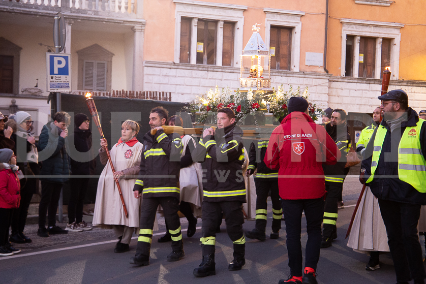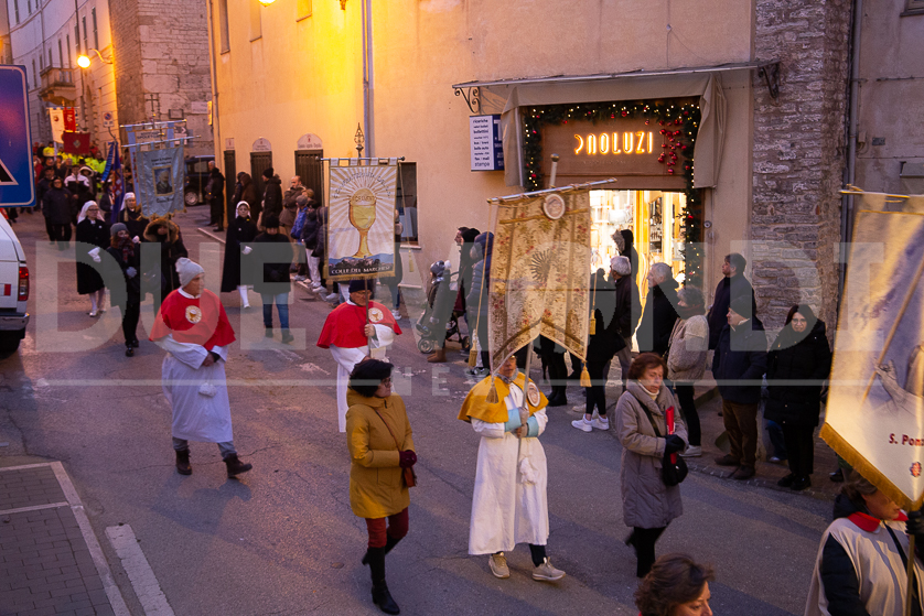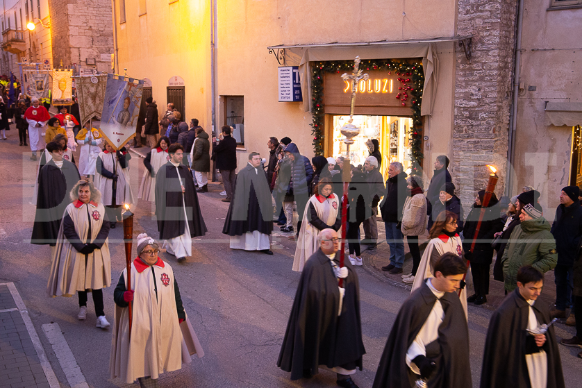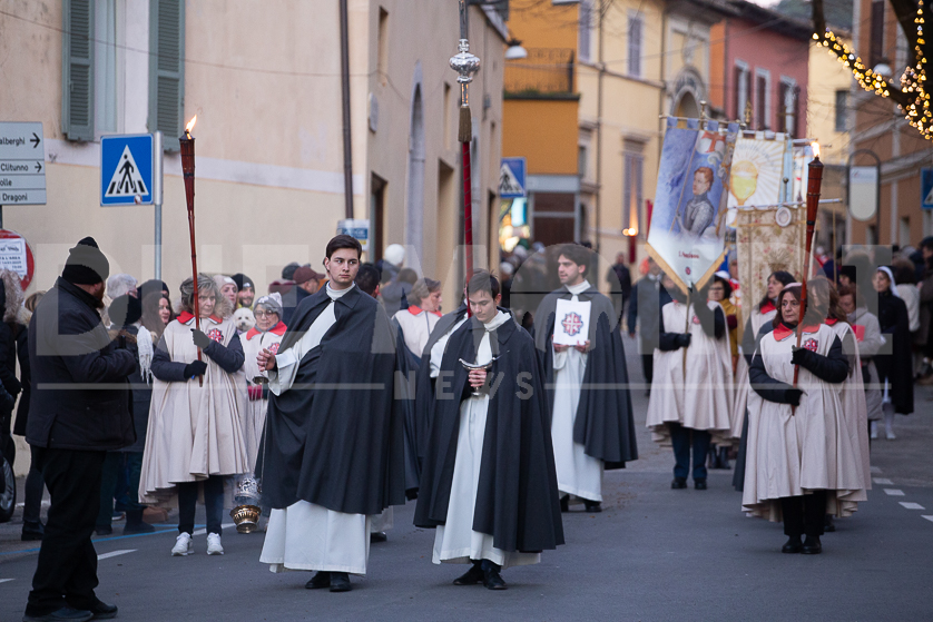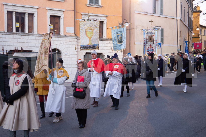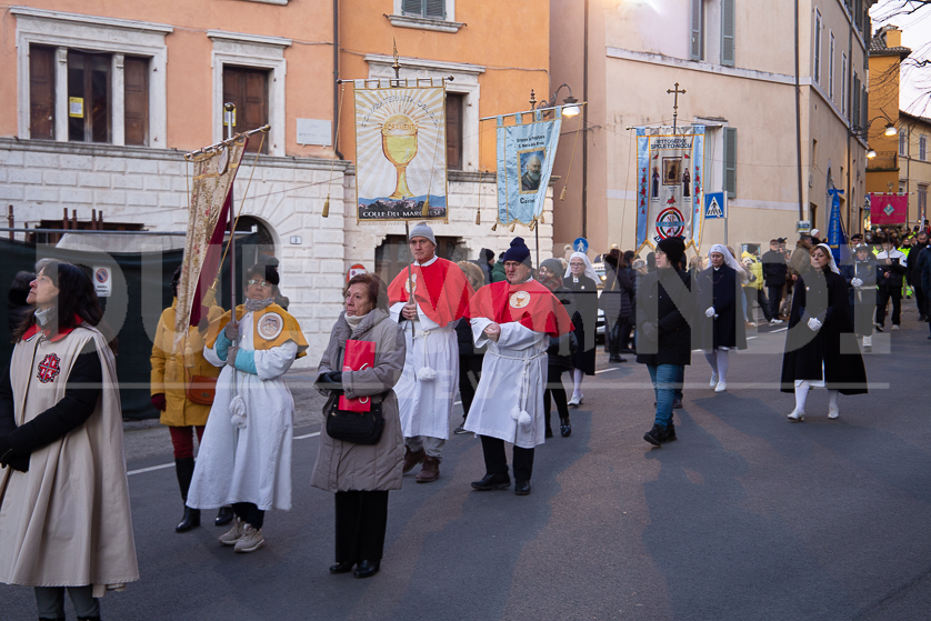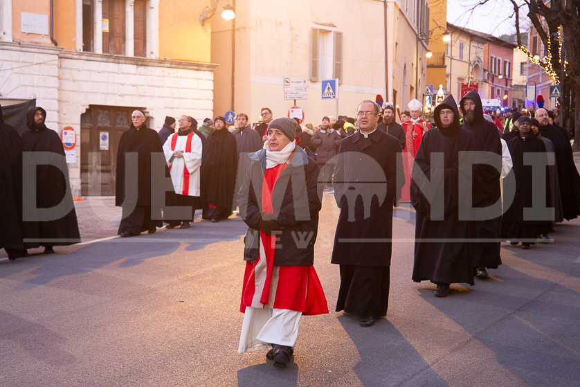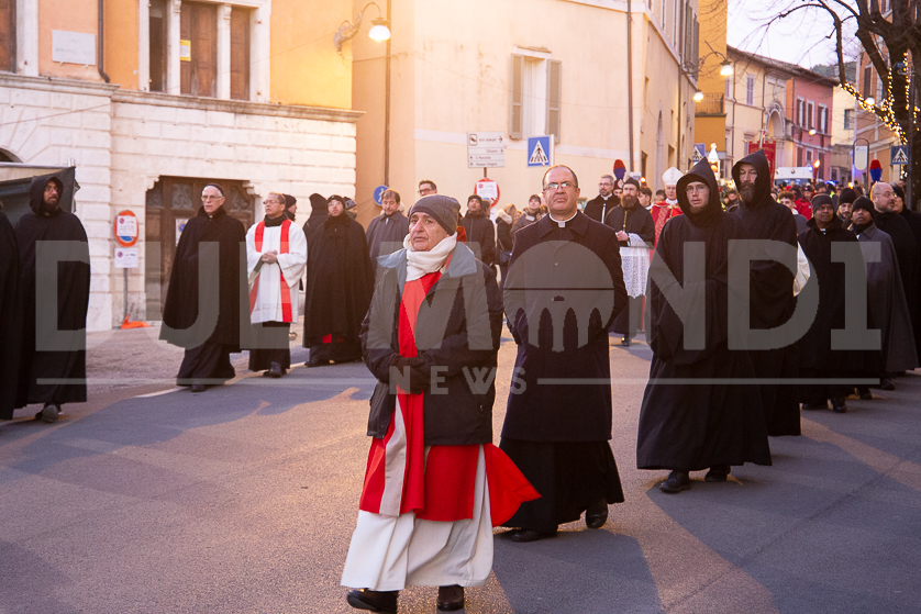 (DMN) Spoleto – Alcune immagini della processione di San Ponziano, dalla Cattedrale di Santa Maria Assunta fino alla Basilica del Santo, con statio di preghiera al Ponte Sanguinario, luogo del Martirio del Patrono, il 14 gennaio del 175.