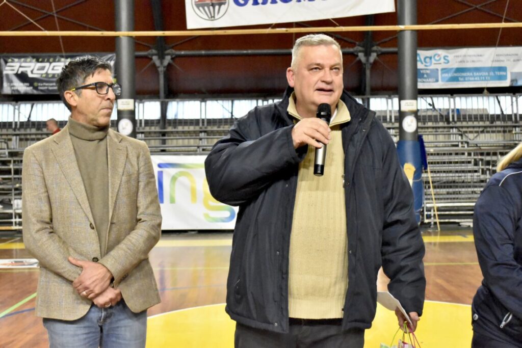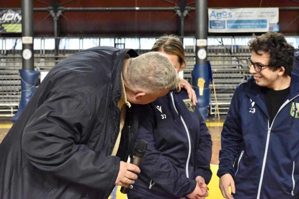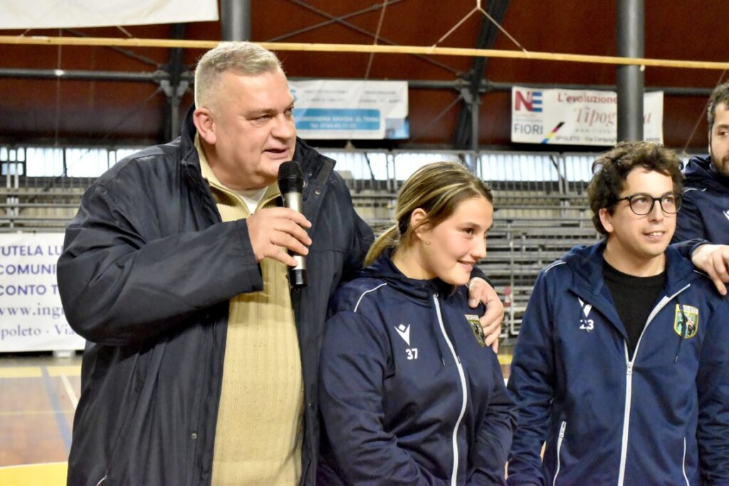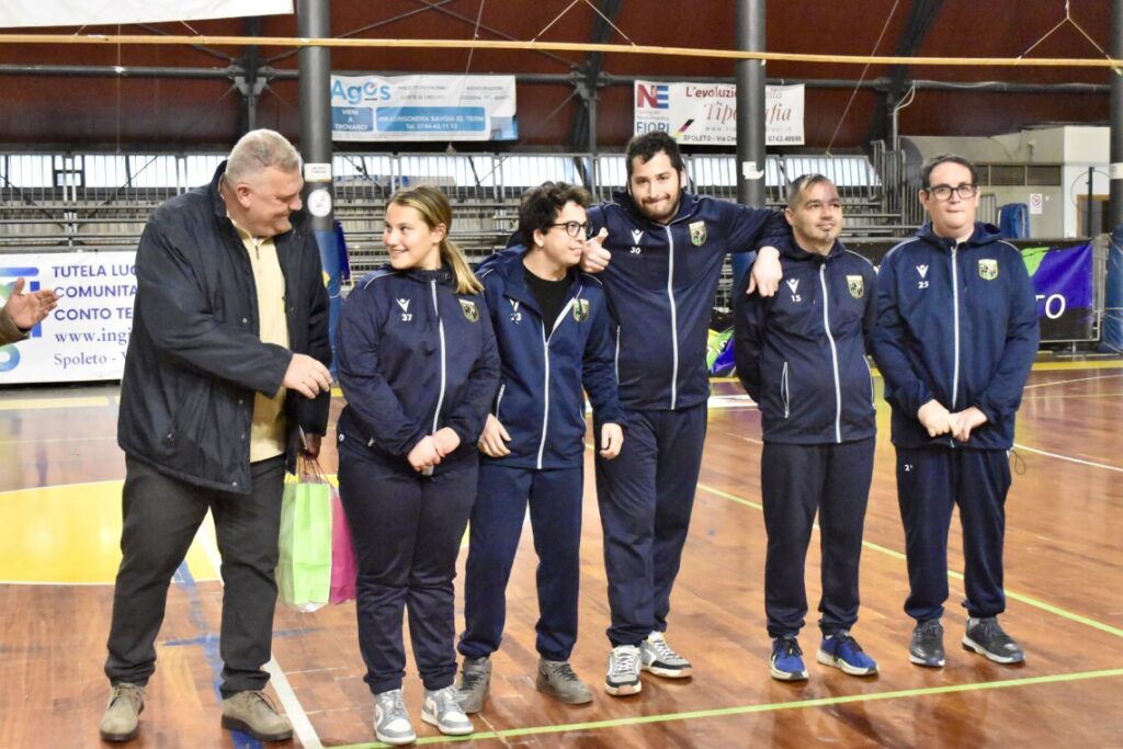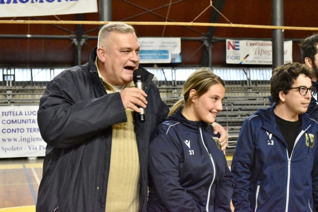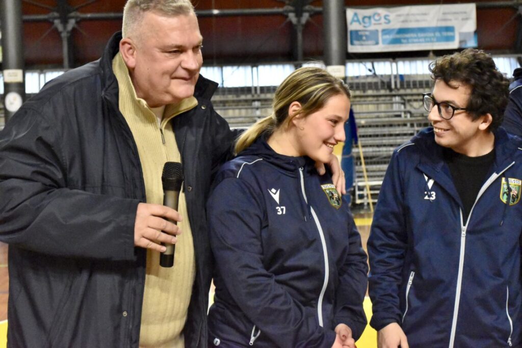 Il PalaRota non ha vissuto solo la buona partita di campionato della Ducato Futsal contro il Lidarno. Ma, nell’intervallo, è stato lasciato spazio a qualcosa di più grande e profondo: dopo qualche settimana, infatti, è stato il momento per sancire un legame profondo, di quelli indissolubili, tra la famiglia Berti-Stocchi ed una delle realtà più importanti e significative del mondo Ducato, il Calcio Integrato. Come noto, durante le esequie di Eleonora Berti, ragazza spoletina troppo presto salita in cielo, la famiglia organizzò una raccolta di fondi da destinare alla parte sociale dello sport. Una parte di questa somma, raccolta anche grazie alle generose donazioni della Urbani Tartufi ecdella Agenzia Generali di Casarano, in provincia di Lecce, è stata consegnata al presidente Michele Zicavo, a mano di Renzo Berti, papà di Eleonora. Era presente una nutrita rappresentanza del Calcio Integrato, guidata da Davide Feliziani, dirigente responsabile. Un momento toccante è stato quello di una donazione particolare: due paia di scarpe che Eleonora non ha potuto indossare sono andate a Rachele (già sua compagna di scuola ed a Caterina, bomber della squadra). In un PalaRota attento e silenzioso, Renzo Berti, giornalista spoletino di lungo corso, ha confermato che nella futura associazione, che porterà il nome proprio di Eleonora ci sarà spazio per il sostegno di quelli che sulla carta sono più deboli e, quindi, sarà fortificato il legame proprio con la Ducato Calcio Integrato. Era presente anche Federico Cesaretti, assessore con deleghe ai rapporti con le società sportive che ha confermato l’impegno dell’amministrazione comunale a sostegno di queste iniziative. Ha chiuso il presidente della Ducato, Michele Zicavo, con un ringraziamento particolare per la donazione ricevuta, che permette di migliorare il lavoro iniziato. Solo alla fine di questo momento, il folto pubblico si è sciolto in un lungo e partecipe applauso. I ragazzi del calcio integrato si sono, poi, ritrovati al “Sampei” di Castel Ritaldi per la festa degli auguri con i genitori ed i dirigenti. Un momento di allegria, ma anche di riflessione dettata dalle parole di Renzo Berti, presente alla conviviale. Ai ragazzi ha portato il proprio saluto via telefono il consigliere regionale, Stefano Lisci, assente per i postumi dell’influenza. Anche in questa occasione è intervenuto l’assessore Federico Cesaretti, che ha sottolineato l’importanza del progetto della Ducato ringraziando le famiglie Berti e Stocchi per il bellissimo gesto in nome della amatissima Eleonora.