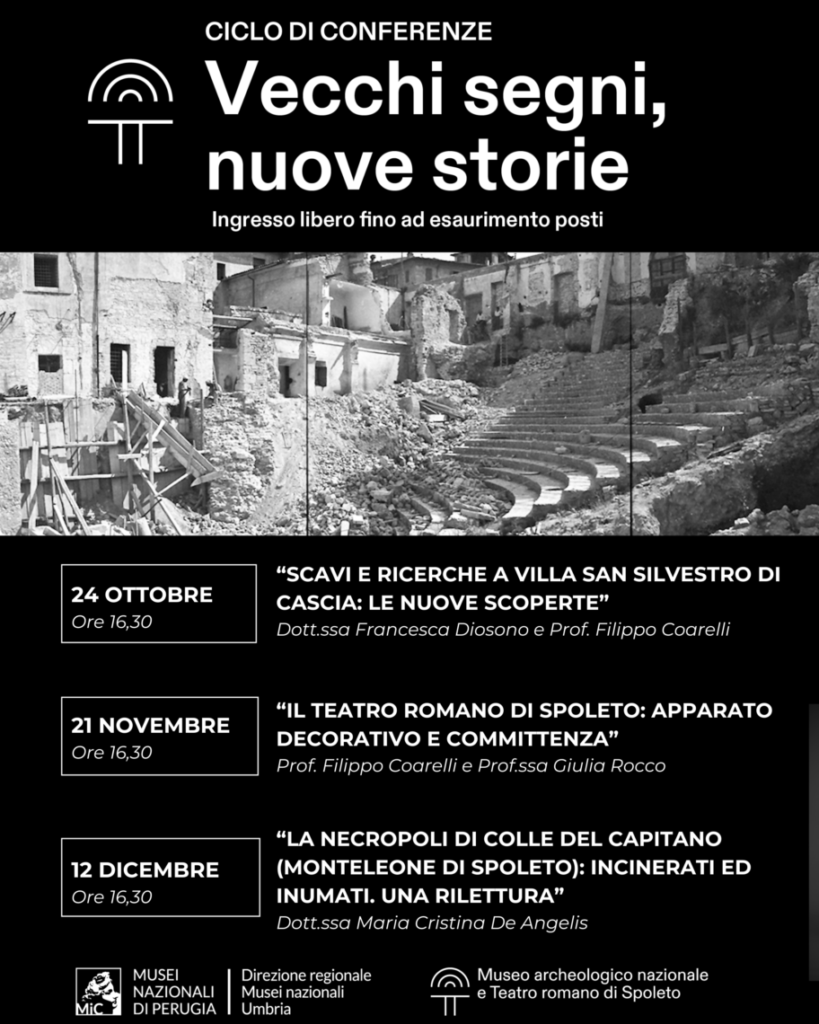 Il ciclo di conferenze – La serie Vecchi Segni, Nuove Storie proseguirà poi con l’ultimo appuntamenti del 2025 che sposterà i riflettori sull’area di Monteleone di Spoleto attraverso le parole della Dott.ssa Maria Cristina De Angelis, pronta ad esporre il risultato dei suoi recenti studi nella conferenza ‘La necropoli di Colle del Capitano: incinerari ed inumati. Una rilettura’, in programma il 12 dicembre (ore 16,30).