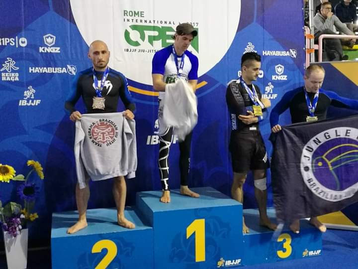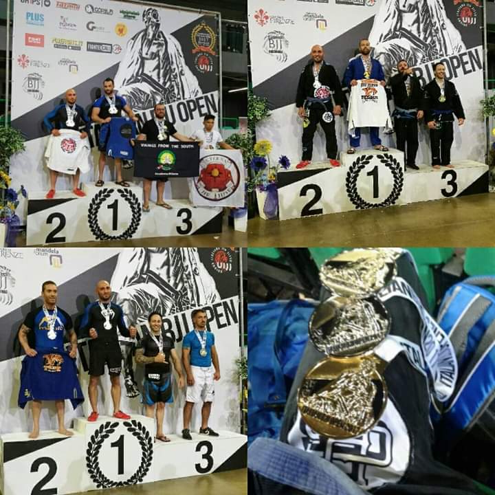 Da lì la scoperta di un mondo nuovo. Io ottuso, sempre e solo convinto che le arti marziali fossero robetta. Invece il Jiu-jitsu ti eleva, quasi in un altra dimensione. Sono 8 anni che pratico costantemente, ora sono arrivato alla cintura viola e ho fatto un sacco di gare. Ho vinto due volte il campionato italiano master no gi e sono arrivato in finale. Un secondo posto agli europei no gi da blu master. Insomma mi diverto lottando.