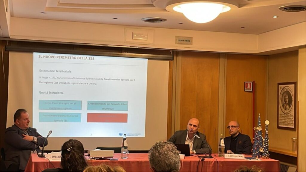 Dopo l’introduzione del presidente di Confcommercio Spoleto Tommaso Barbanera, Domenico Rizzi, del  Settore Politiche di Coesione Confcommercio Imprese per l’Italia, ha illustrato le opportunità legate all’estensione della Zona Economica Speciale all’Umbria (e Marche), stabilita con la Legge 171/2025, che offre alle imprese locali vantaggi fiscali (credito d’imposta) e semplificazioni amministrative (procedura unica e veloce per autorizzazioni), trasformando le “regioni in transizione” in aree competitive, con l’obiettivo di attrarre investimenti e stimolare la crescita produttiva. Spoleto è tra i 37 comuni umbri che rientrano nella ZES: ci sono dunque le condizioni favorevoli non solo per valorizzare e far crescere le imprese locali, anche se si parte da investimenti alti, ma per attrarre nuovi progetti imprenditoriali da fuori.